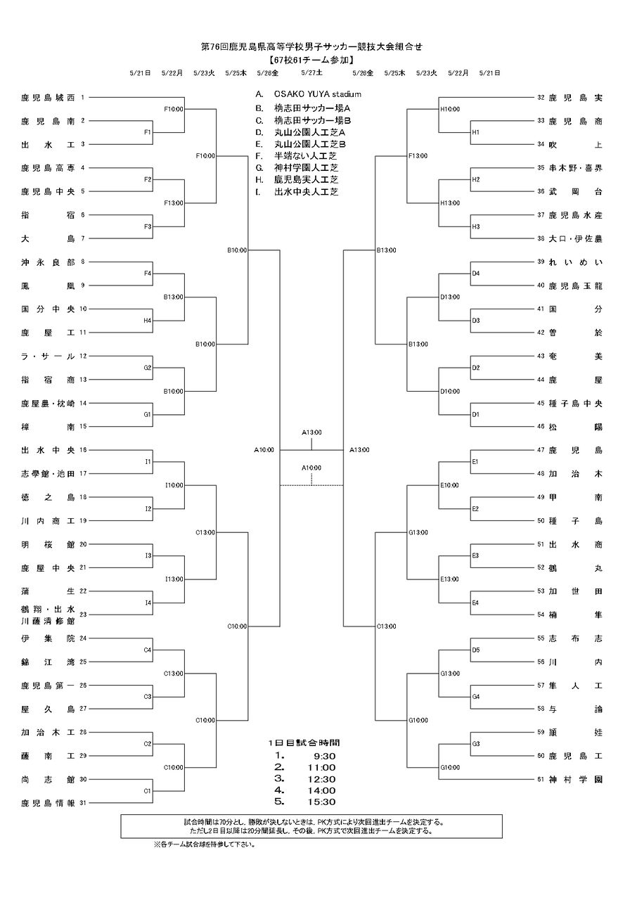 サッカー    (鹿児島城西高校) 5月21日(日)~5月27日(土) 男子組合せ表 OSAKO YUYA stadium   ほか