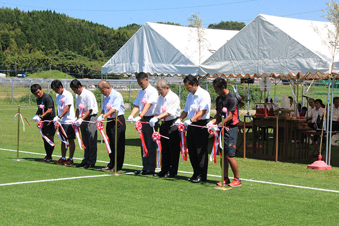 平成27年8月8日(土)宮崎県内の学校で初となる人工芝サッカー場の完成オープニング記念セレモニーを実施しました。