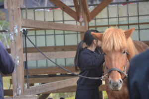 それからふれあい、ブラッシング、乗馬などそれぞれの興味に合わせて体験していただきました。