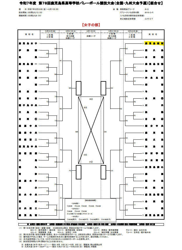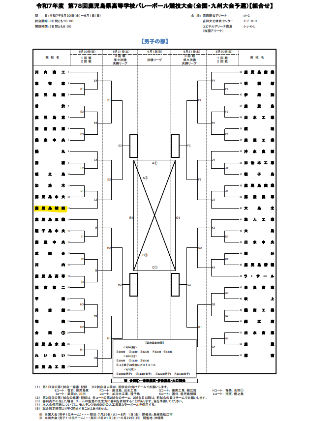 | バレー (鹿児島城西高校) | 5月30日(金)~6月 1日(土) | 男子組合せ表 | 西原商会アリーナ ほか |