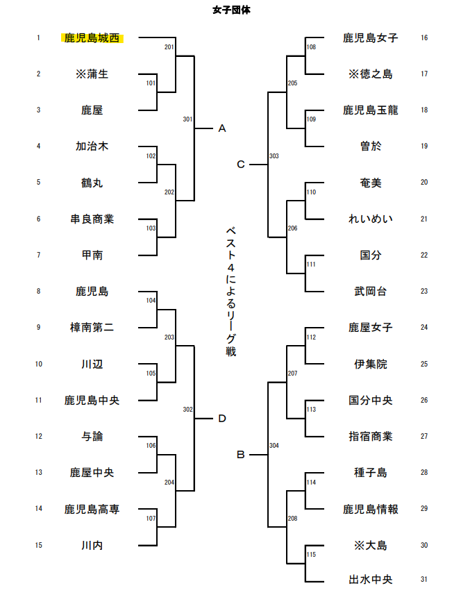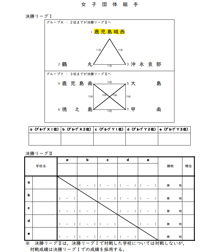 | 卓球 (鹿児島城西高校) | 5月21日(水)~5月24日(土) | 女子組合せ表 | 鹿児島県総合体育センター体育館 |