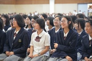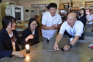 6月8日(木)宮崎市にある日章学園高校で本校生徒との交流会がありました。盛大な歓迎セレモニーの後、調理科や電気科など7学科に分かれて授業を受けました。実習授業を通して仲良くなった生徒もいました。留学生の李依桐さんは「中国は進学系の高校がほとんどなので、このような職業系で専門的に学べる高校はすばらしいですね。実習服もかっこいいですね」と感想を述べてくれました。また交流会の後には大学ガイダンスと海の見学があり、生徒たちは充実した一日になったようです。