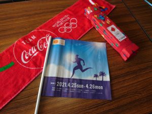 2021年4月26日(月)宮崎県内での聖火リレーが行われ、ここえびの市でゴールを迎えました。男子柔道日本代表監督の井上康生さんやオカリナさんも走り、夕暮れの中、オレンジの輝く聖火がリレーされていく様子はとても感動的でした。