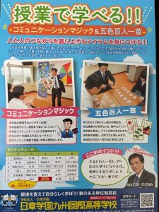 6月9日(水)に「コミュニケーションマジック&五色百人一首」の授業がありました。本校ではコミュニケーションツールとしてマジックや五色百人一首を授業で楽しく学ぶことができます。本日は第1回の授業で校長が生徒たちにたくさんのマジックを披露し、生徒たちは驚いたり、「自分もできるようになりたい」と好奇心旺盛な様子でした。また百人一首では2人一組で、メンバーチェンジしながら2戦しました。新入生も入学したばかりで、生徒同士が仲良くなる良い機会となりました。