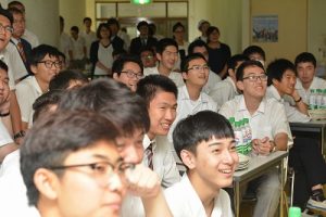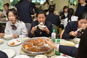 6月28日(水)本校留学生たちの生活や学習支援を行ってくださっている留学生助成基金協会の役員の方々が来校され、昼食会を開いてくださいました。留学生の日頃の活動を動画で報告した後、留学生代表のリュウイさんが「いつも私たちを応援してくださってありがとうございます。留学試験を終え、これから本格的に大学受験に臨みます。留学生全員が大学合格を果たしますので、引き続き応援をよろしくお願いします」と感謝の言葉を述べました。その後は皆で中華料理を囲み楽しいひとときを過ごしました。最後に協会の方々よりお菓子などのプレゼントもいただき、留学生たちは喜んでいました。