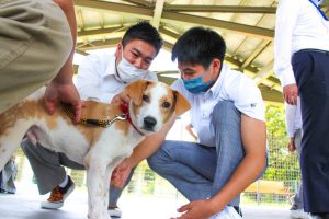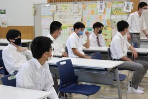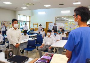 6月23日(水)みやざき動物愛護センターにお伺いし、「いのちの教育」授業を受けました。動物愛護センターの取り組みについて説明を受けた後、授業では命は自分一人だけのものではなく多くの命が繋がっているという命の連鎖について学び、改めて命の大切さに気付かされました。その後施設見学をし、保護されている犬や猫と触れ合いました。生徒たちは一様に優しい笑顔で動物たちに接していました。帰校後、感想文を書いてもらいましたが、「ペットは最後まで責任を持って飼わなければならない」「動物も私たちと同じ命だ」「愛護センターの方々の命をつなぐ活動に感動した」「将来は愛護センターのような動物の命を助けられるようなところで働きたい」などと書いており、今回の授業が生徒たちの心に残ったようでした。
