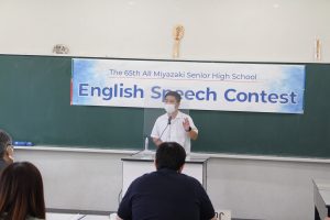 9月17日(金)に「第65回 宮崎県高等学校英語スピーチコンテスト」が宮崎県立大宮高校で行われました。予選(書類選考)では40人の応募の中から24人が選ばれ、本校から2名の生徒が本選に出場できました。出場した松尾君は、今回で2年連続の出場となり「マイクロアグレッション~人々の潜在的な意識が引き起こす差別」というテーマで熱弁を振るいました。2名とも惜しくも入賞はできませんでしたが、今大会を通して大きな成長を見せてくれました。