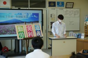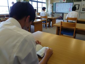 10月1日(金)から後期がスタートしました。1時間目の開講式では校長先生や各部の先生方からの話、新任の寮母さんの紹介、生徒意見発表がありました。始業式当日は英語検定も実施されました。隙間時間に英単語を覚える生徒の姿も見られ、後期の授業への意気込みが感じられました。