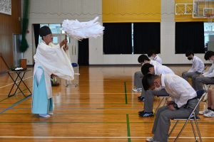 3年生の進学・就職試験を前に、安全・合格祈願祭が行われました。えびの市の水流菅原神社の宮司様を本校体育館にお迎えし、合格祈願の神事を執り行いました。3年生の就職・進学試験はもちろん、1・2年生の資格検定の合格者もたくさん出ることを祈っています。