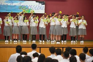 7月21日(金)本校体育館で「Nothing Is Impossible」をテーマに文化祭が行われました。英語・日本語の弁論から始まり、合唱や仮装コンテスト、個人ステージなどがありました。弁論の部では流暢な英語・日本語で自分の思いを熱く語ってくれました。合唱の部では「ひまわりの約束」を課題曲として各クラスがひまわりの花を持って歌ったり、歌唱隊形を工夫したりして各クラスの個性を出し、魅力的なステージとなりました。個人ステージでも会場全体が盛り上がり、生徒ひとり一人の特技が活かされた良い文化祭となりました。