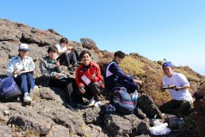 11月4日(木)すっきりと晴れ渡った晴天のもと、えびの高原で遠足を実施しました。池巡りコースと韓国岳登山コースに分かれて、えびの高原の自然を満喫しました。えびの高原は紅葉シーズンに入り、落ち葉の赤いじゅうたんの上を歩いていると、鹿にも遭遇しました。そして山頂や展望台で霧島連山を眺めながらのお弁当は最高でした。
