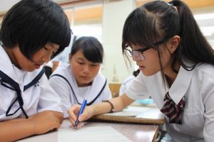 8月21日と22日に、小林市立三松中学校1年生とのサマーセミナーが行われました。本校の留学生20名がA~Dの4つのレベルに分けられたクラスにそれぞれ配属され、英語と数学を日本語で教えていました。「日本人生徒は非常に礼儀正しい」「数学の問題の解き方が中国とは違う」など、母国との違いを感じることもでき、楽しく学ぶことのできた2日間となりました。