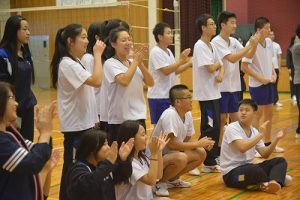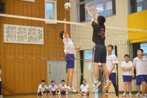 9月22日(金)本校体育館でスポーツ交流会がありました。バレーボール競技で各クラスが熱戦を繰り広げ、応援にも熱が入り、良いプレイが出るたびに歓声が上がっていました。優勝は男子が2組、女子が4組という結果でした。