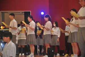 7月17日(日)に熱中症・新型コロナウイルス感染対策を十分に行った上で、プログラムを縮小して文化祭を実施しました。文化祭では「以心伝心~今こそ伝えよう~」をテーマに弁論、クラス発表、作品展示があり、どの発表も熱が入っており見ごたえがありました。短い時間での準備でしたが生徒が一致団結して取り組み素晴らしい文化祭でした。