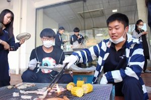 10月26日(木)後期に入学した生徒の歓迎会と大学・就職試験に向けて力をつけてもらおうという2つの目的で焼き肉会を開催しました。生徒たちは火を起こすところから肉を焼いて食べるところまでみんなで協力して、テキパキと動いていました。大勢で食べる焼き肉はおいしいといって、お腹一杯になるまでお肉をほおばっていました。日本人の新入生にとっては留学生と交流する良い機会となったようです。