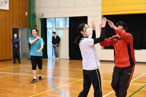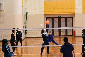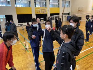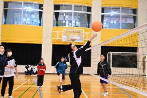12月22日(木)本校体育館でスポーツ交流大会を行いました。生徒会長を中心に学年、先生、男女混合チームを編成し、ソフトバレー対戦を実施し、盛り上がりました。