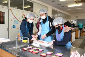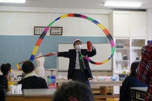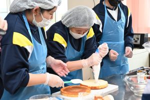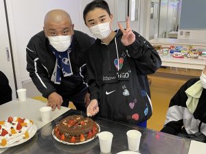 12月22日(木)にクリスマス会を実施しました。グループに分かれてケーキを作りました。各グループごとに個性のあるケーキが出来上がっていて、とてもきれいでおいしそうでした。ケーキを食べた後は校長先生のマジックショーやビンゴゲームがあり、楽しいクリスマス会となりました。