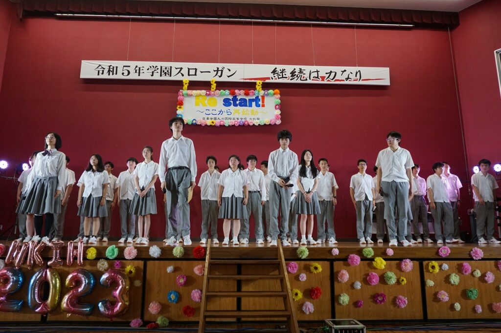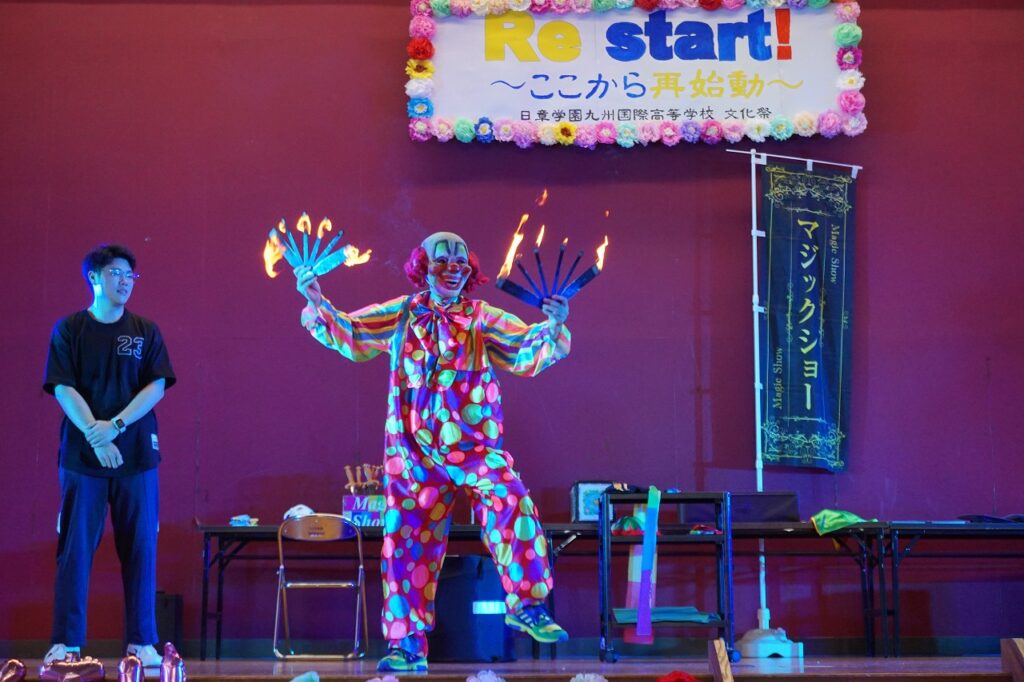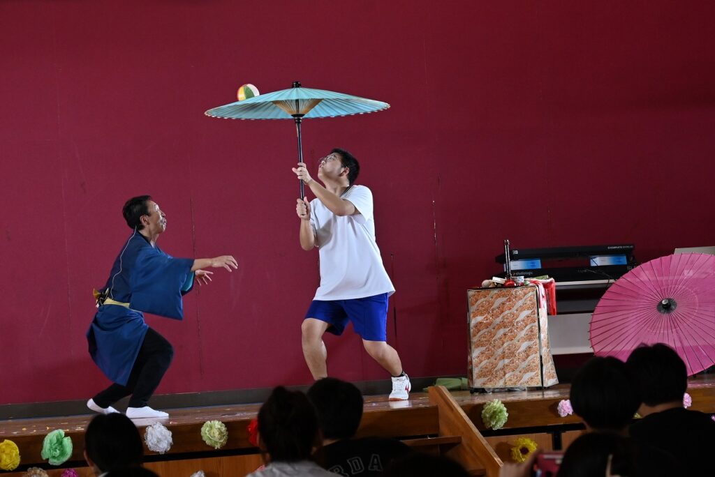 7月22日(土)本校体育館で文化祭がありました。「Re start!~ここから再始動~」をテーマに弁論・合唱・作品展示・個人発表がありました。生徒と校長先生による教育マジックショー、「江戸太神楽・曲芸師 仙若」様による伝統芸能のショーもあり、生徒たちは一つ一つの芸に感嘆の声を上げていました。