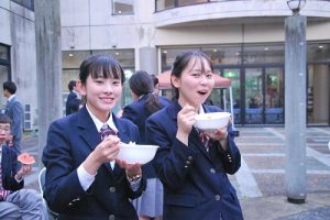 えびの市長による歓迎の言葉があった後、食事をしながらえびの太鼓を鑑賞したり、留学生の出し物として合唱をしたりしました。最後にはえびの市の皆様と一緒にえびの音頭を踊って楽しい時間を過ごしました。