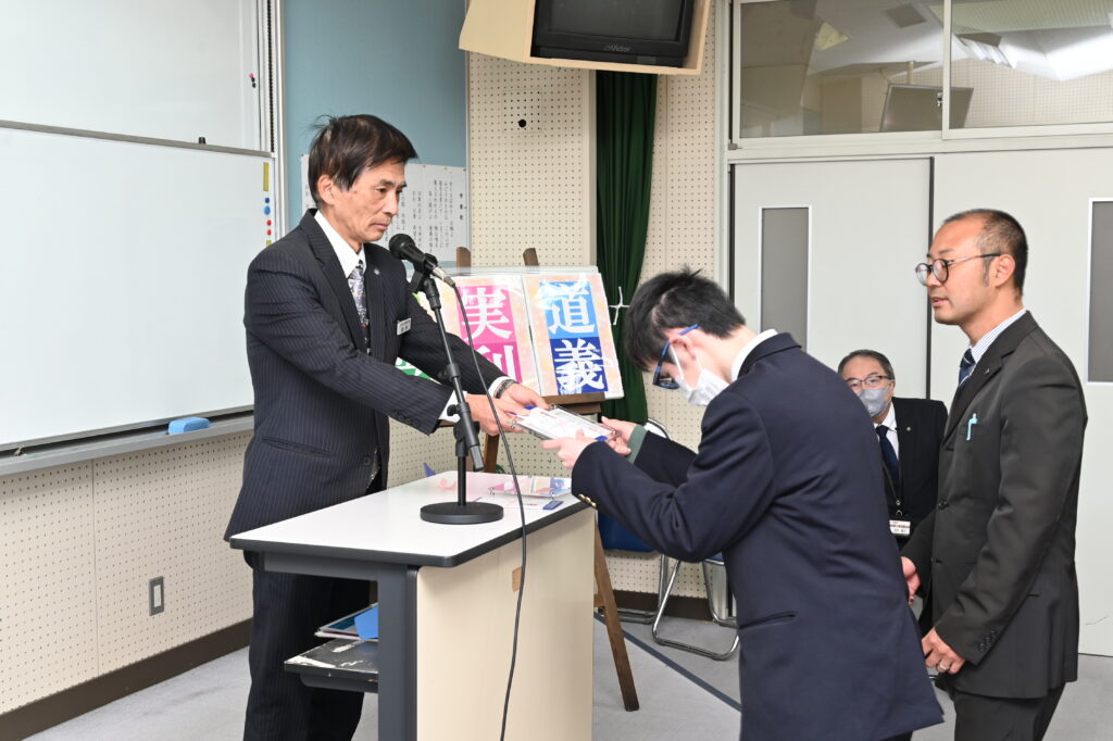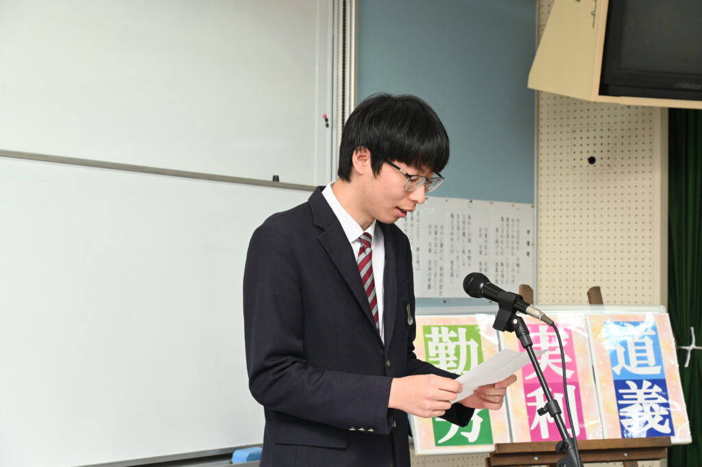 1月8日(水)冬休み明けの開講式が行われ、開講式では先生方の話や生徒代表意見発表、グリット賞の表彰がありました。屋田校長から「2025年は巳年で大きく脱皮をする年です。本校は創立30周年を迎えます。皆で力を合わせて大きく強く脱皮し成長しましょう」と新年の挨拶がありました。生徒代表2名が新年の抱負を堂々と力強く発表してくれました。式の最後には昨年将棋で活躍した濵砂さんにグリット賞が与えられました。今年もよいスタートを切りました。