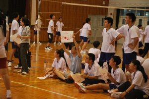 7月18日(水)本校体育館でクラスマッチが行われました。競技はバレーボールで、男女それぞれ2チームを編成して試合に挑みました。日本人と留学生が同じチームでプレイをして、それぞれのクラスが熱線を繰り広げました。決勝戦では試合もさながら応援にも熱が入り、大変盛り上がりました。優勝は男子が3年1組、女子が3年2組という結果になりました。