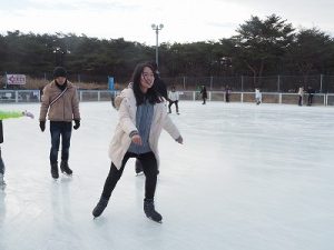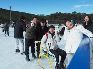 12月8日(土)にえびの市観光協会主催でえびの高原にあるアイススケート場に行きました。朝は大変冷え込んでいましたが、昼前からおひさまも顔を出し気持ちのいいスケート日和となりました。半数の生徒がスケート初体験で、最初は恐るおそる氷の上を歩いていましたが、沢山転んで上手に滑れるようになっていました。寒い中でもたくさん汗をかいて気持ちよさそうに滑っていました。帰りには硫黄山を間近で観察したり、えびの高原エコミュージアムセンターでえびのの自然について勉強することもでき、大変充実した一日となりました。