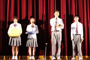 9/28(土)文化祭が行われました。今年は「travel internationally~国境を超える~」というテーマで生徒一丸となって取り組みました。弁論の部ではそれぞれのテーマを日本語や英語で熱弁し、合唱の部では各クラスが工夫を凝らして美声を響かせていました。その他にもダンス・吹奏楽・劇などがありたいへん盛り上がりました。生徒たちの多彩な才能と結束力が発揮された良い文化祭でした。