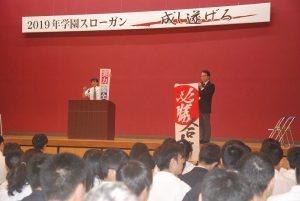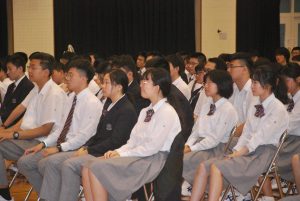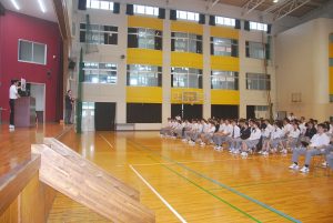 前期・後期2学期制の本校は、 10月1日(火)から後期授業がスタートしました。それに伴い始業式が行われました。本校は受験生が多いということで、校長をはじめ多くの先生がたから激励の話がありました。また、校長から1分暗唱企画も発表され、生徒たちは挑戦したいと意気込んでいるようでした。後期も勉強にスポーツに精一杯取り組んで充実したものにしてほしいです。