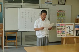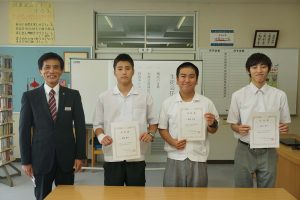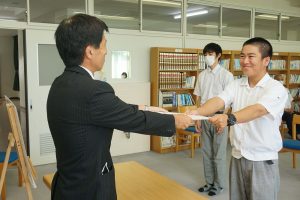 6月24日(水)に本校図書室において生徒会任命式が行われました。生徒会長に松尾大志くん、副会長に坂元帝斗くん、君嶋健斗くんが選出され、それぞれが生徒会役員として取り組みたいことを力強く述べてくれました。松尾くんは「人をまとめたり、アイディアを出すことは得意だが、先頭に立って行動することが苦手であった。しかし皆様の力を借りて生徒会長として率先して様々な行事や活動に関わっていきたい」と挨拶し、積極的に取り組んでいこうという姿勢が出ていました。今後の生徒会の活動に期待ができそうです!