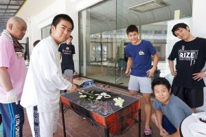 スポーツ交流会の後は「思い出バーベキュー」を実施し、和気あいあいとお肉を焼いてたくさん食べて元気になりました。