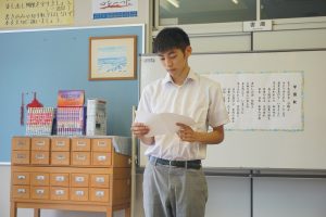 7月20日(月)に7月期前期の閉講式がありました。閉講式では3人の生徒が4月からの反省や夏休みの過ごし方について意見発表を行いました。学校長訓話では夏休みは計画を立てて有意義に過ごし、生活のリズムを崩さないように体調面にも気を付けて元気に過ごしてほしいとお話があり、生徒たちも熱心に耳を傾けていました。