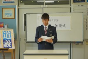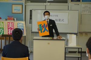また始業式では校長先生から「心構えで挫折は力に変わる」という話をしていただきました。そして在校生が後期の目標を発表しました。生徒たちの後期に対する期待が表れた良い内容でした。