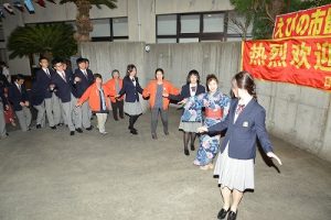 5月29日(月)えびの市による留学生歓迎会がえびの市国際交流センターで行われました。市長をはじめ市議会、留学生交流推進協議会など多くの方々から温かい歓迎の言葉をいただき、手作りのカレーやガネ、地鶏などたくさんのおいしい料理で持てなしていただきました。飯野高校生によるえびの太鼓の演奏もありました。留学生たちは和太鼓演奏を聴くのが初めてで、その迫力と技術に感動していました。最後にはえびの市の皆さんとえびの音頭を踊り、本当に楽しい時間を過ごすことができました。ありがとうございました。