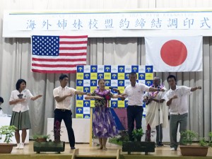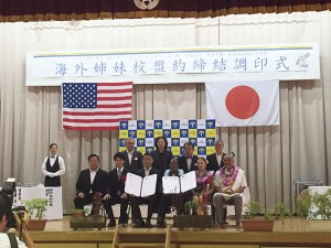 平成27年9月16日、鹿児島城西高校において、ハワイ州立大学カピオラニ・コミュニティ・カレッジと日章学園25校目となる姉妹校盟約締結調印式を実施しました。